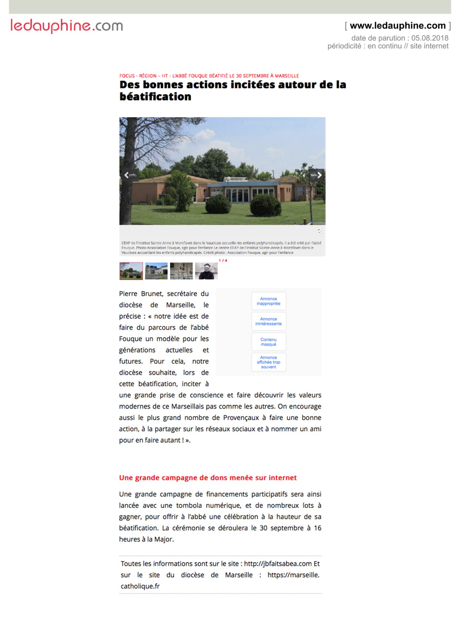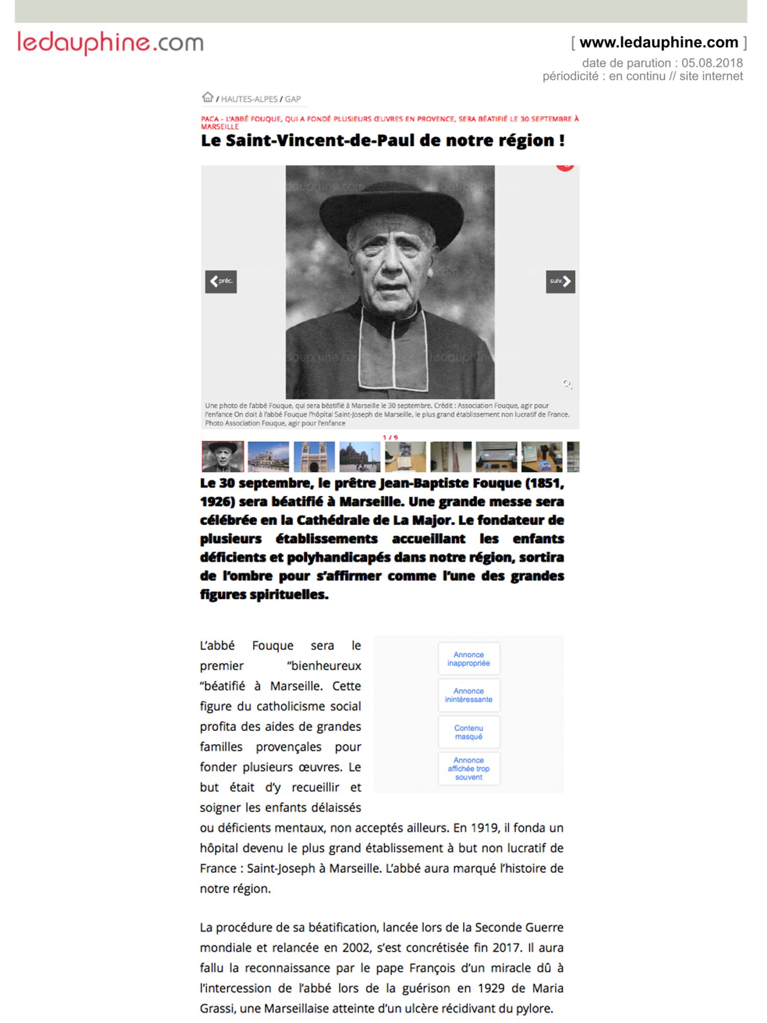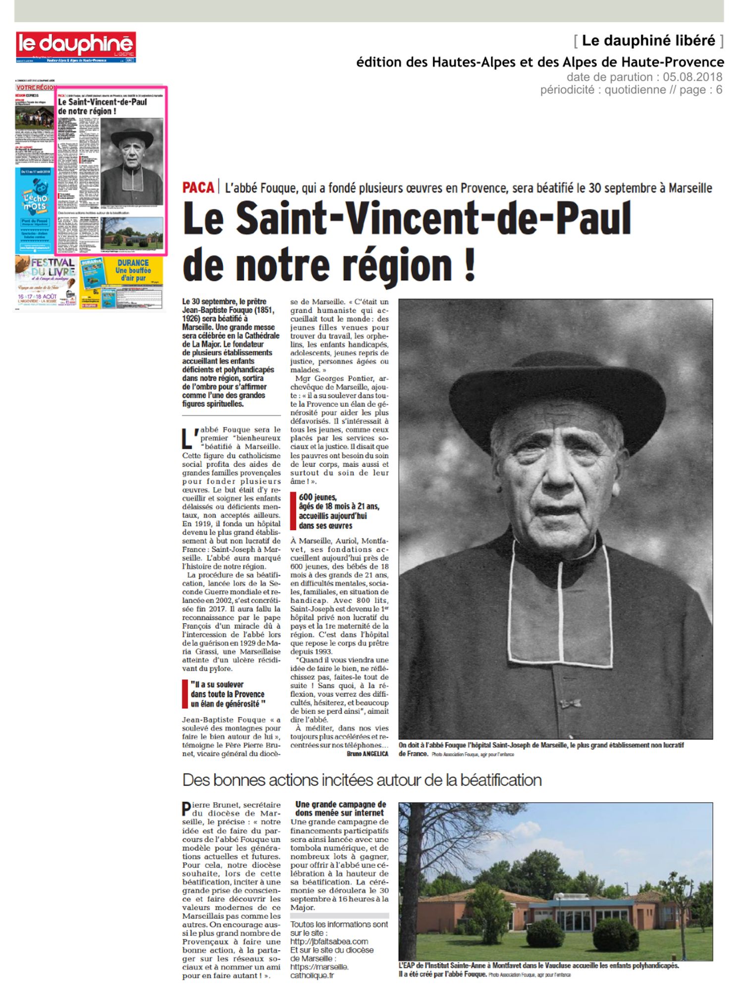 Le Dauphine, 05/08/2018 : Le Saint Vincent de Paul de notre région! Le Saint Vincent de Paul de notre région (1.3 Mo) L'article (497.6 Ko) Suite de l'article (494.0 Ko)