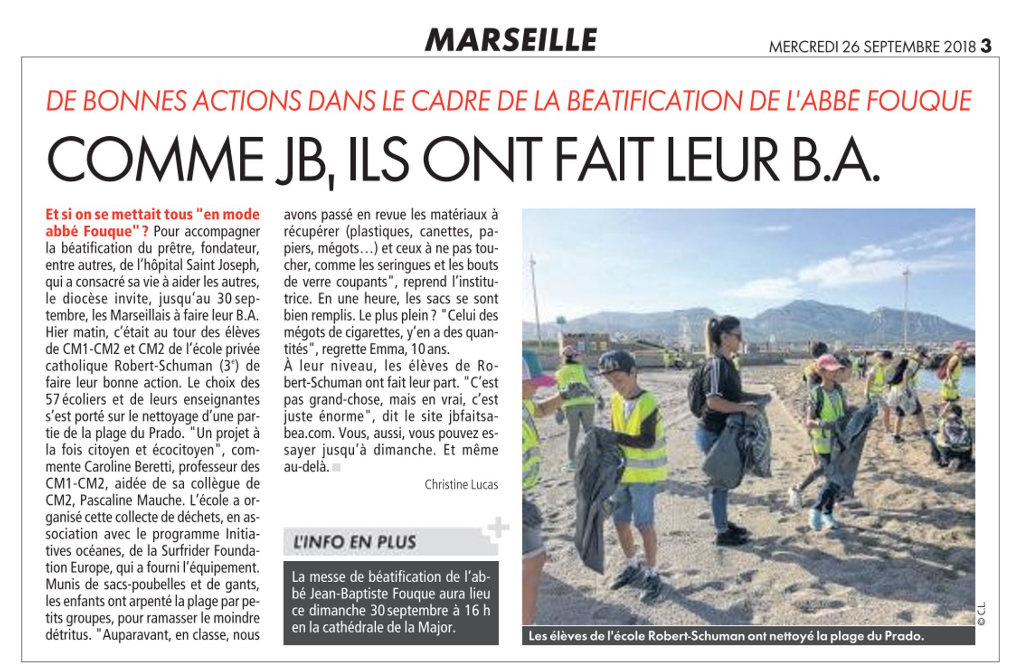 CNews, 26/09/2018 :De bonnes actions dans le cadre de la Béatification de l'abbé Fouque Cnews, 26 septembre 2018 (177.3 Ko)