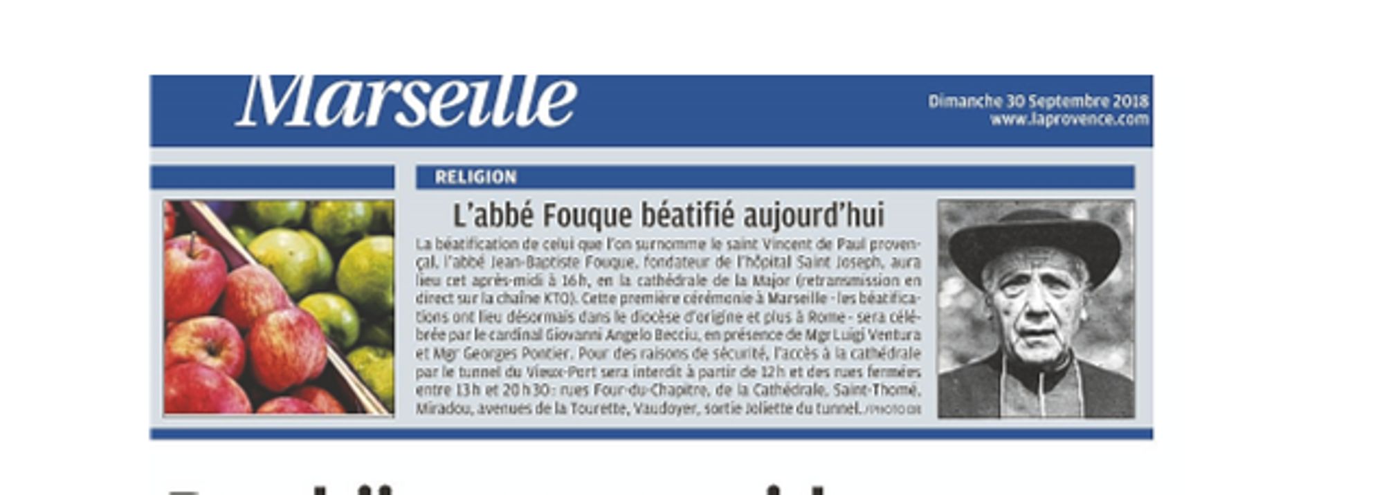 La Provence, 30/09/2018 : Annonce Béatification de l'abbé Fouque La Provence, 30/09/2018 : annonce béatification de l'abbé Fouque (3.3 Mo)