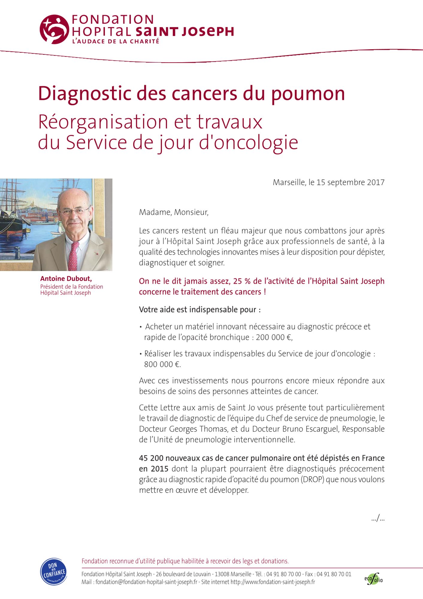 Cette Lettre aux amis de Saint Jo vous présente tout particulièrement le travail de diagnostic de l’équipe du Chef de service de pneumologie, le Docteur Georges Thomas, et du Docteur Bruno Escarguel, Responsable de l’Unité de pneumologie interventionnelle.