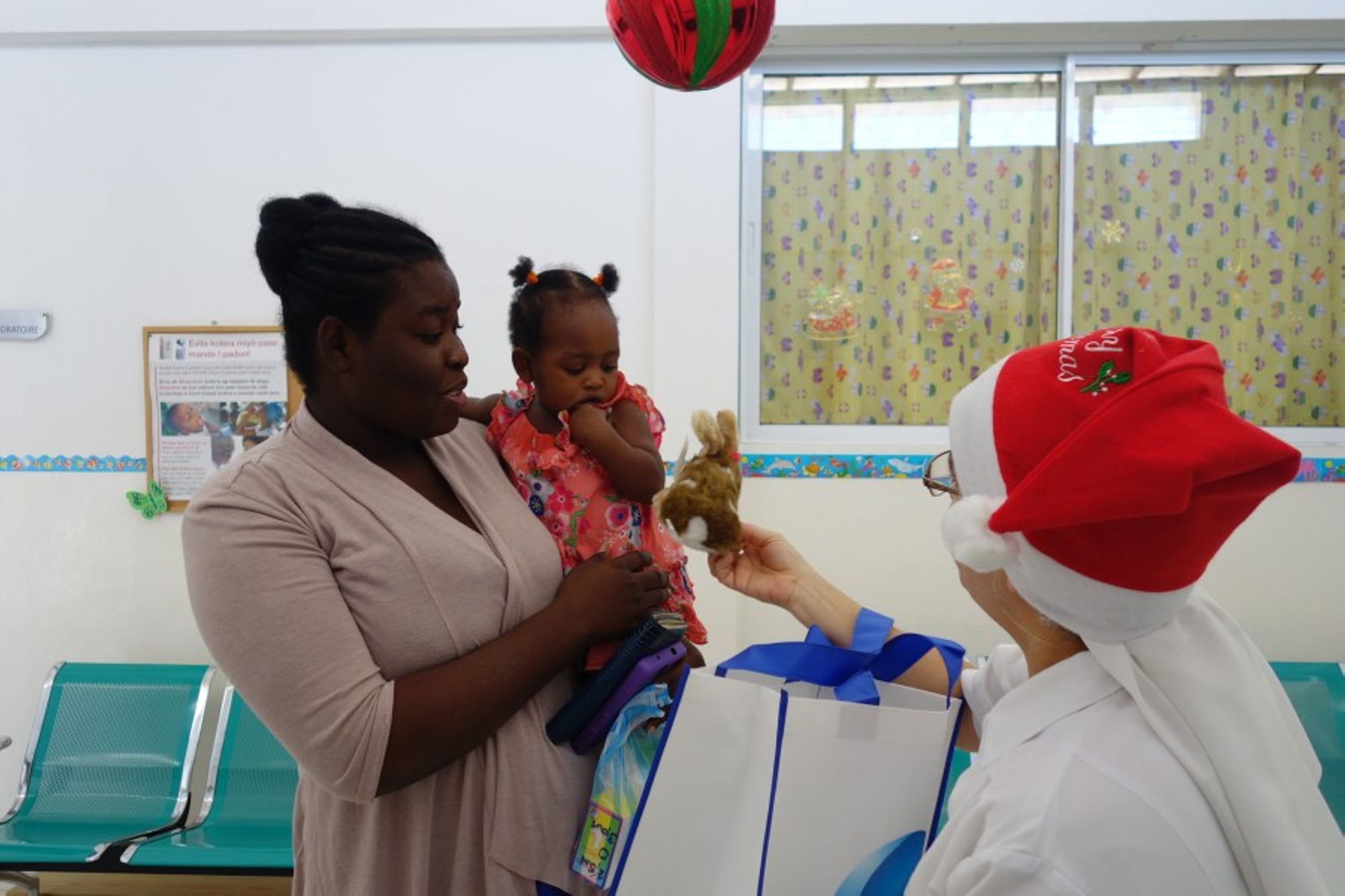 Egalement, le Centre pédiatrique a souhaité offrir de la joie aux enfants soignés. La veille de Noël, tous les enfants qui venaient consulter ont eu la surprise de recevoir un sac cadeau composé d'un vêtement, d'une peluche et de biscuits. Les enfants étaient très heureux en repartant de chez le médecin.