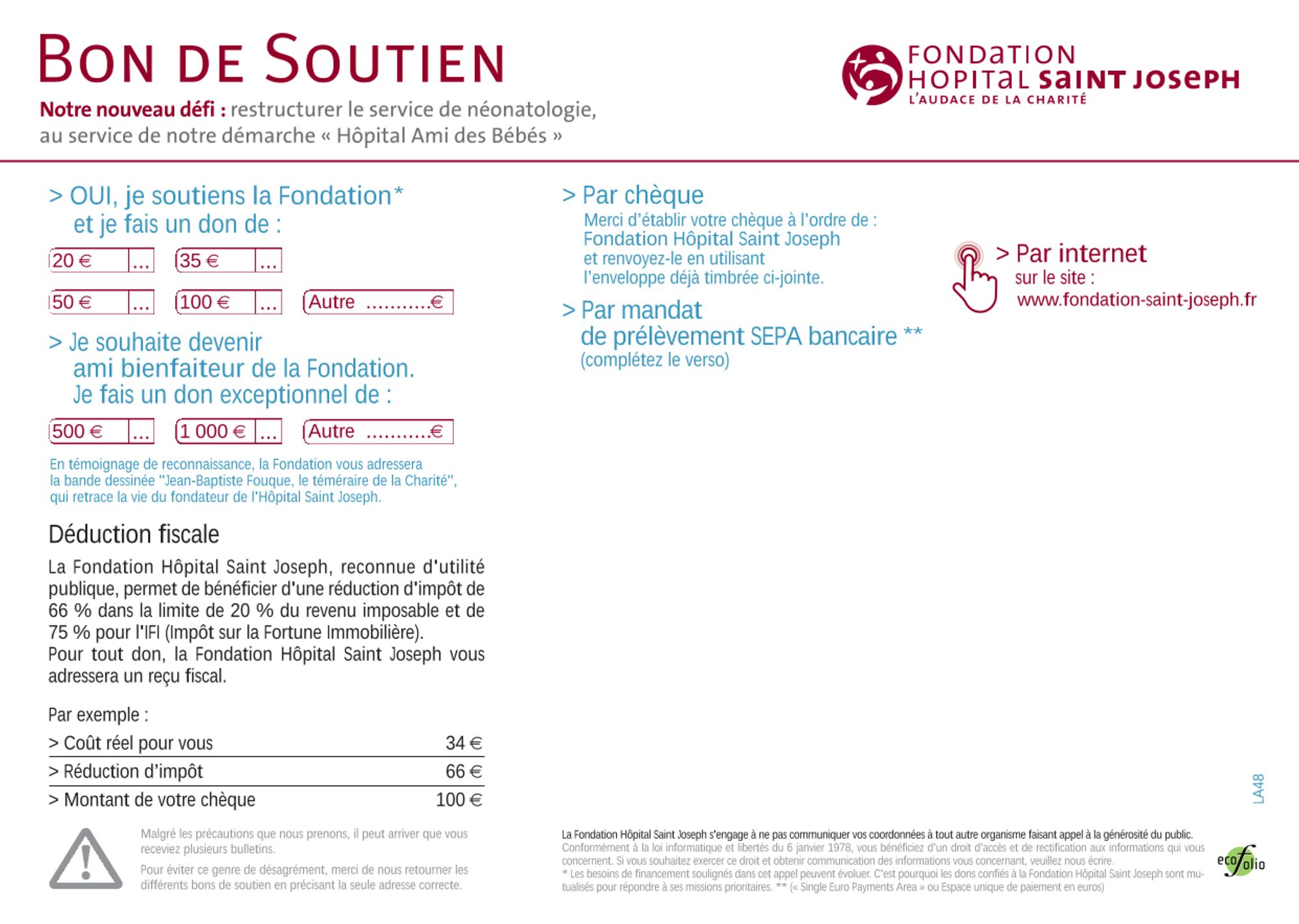 La Fondation Hôpital Saint Joseph vient de lancer un nouvel appel aux dons afin de restructurer le service de néonatologie.