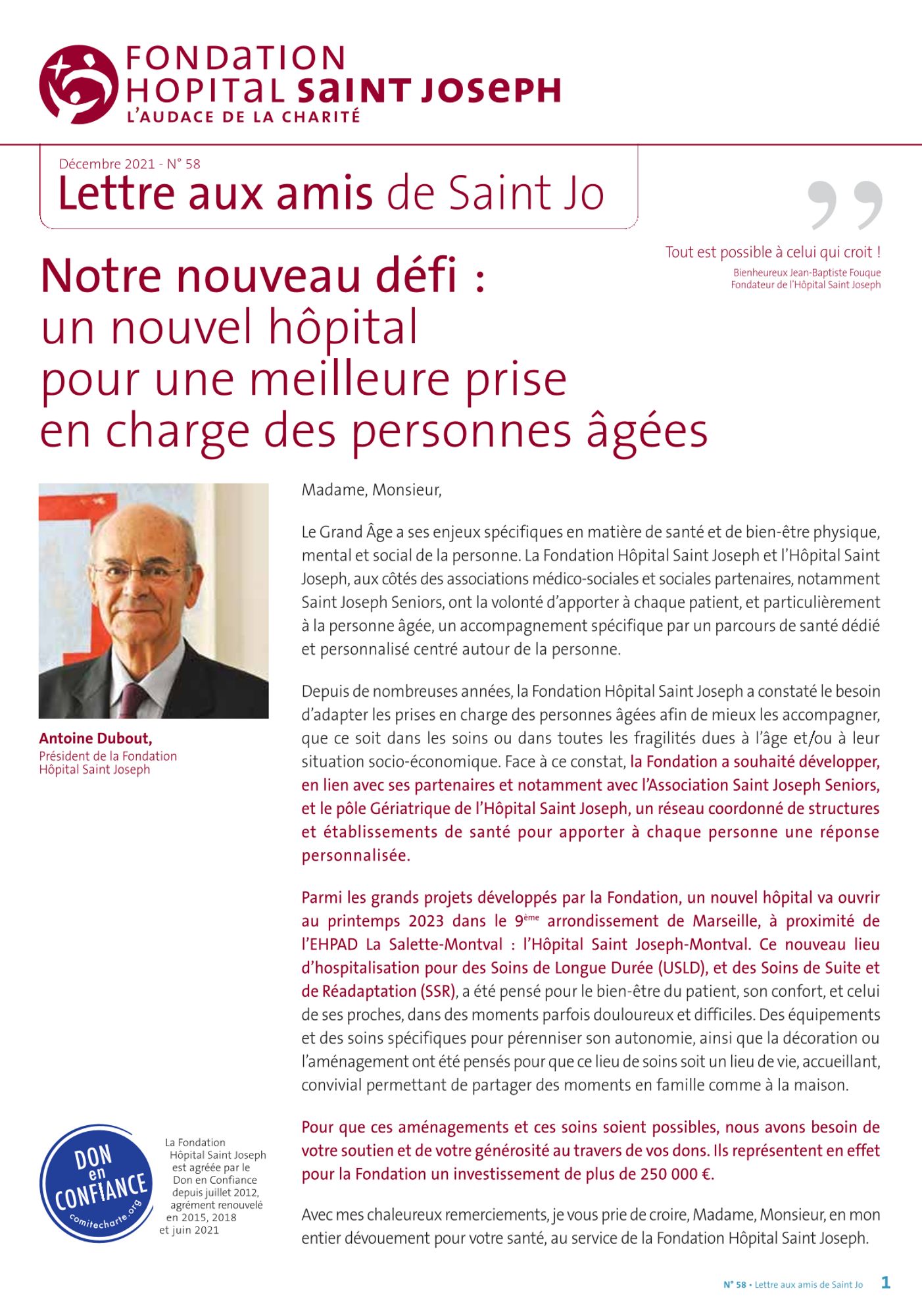 Lettre aux amis n°58 : Un nouvel hôpital pour une meilleure prise en charge des personnes âgées