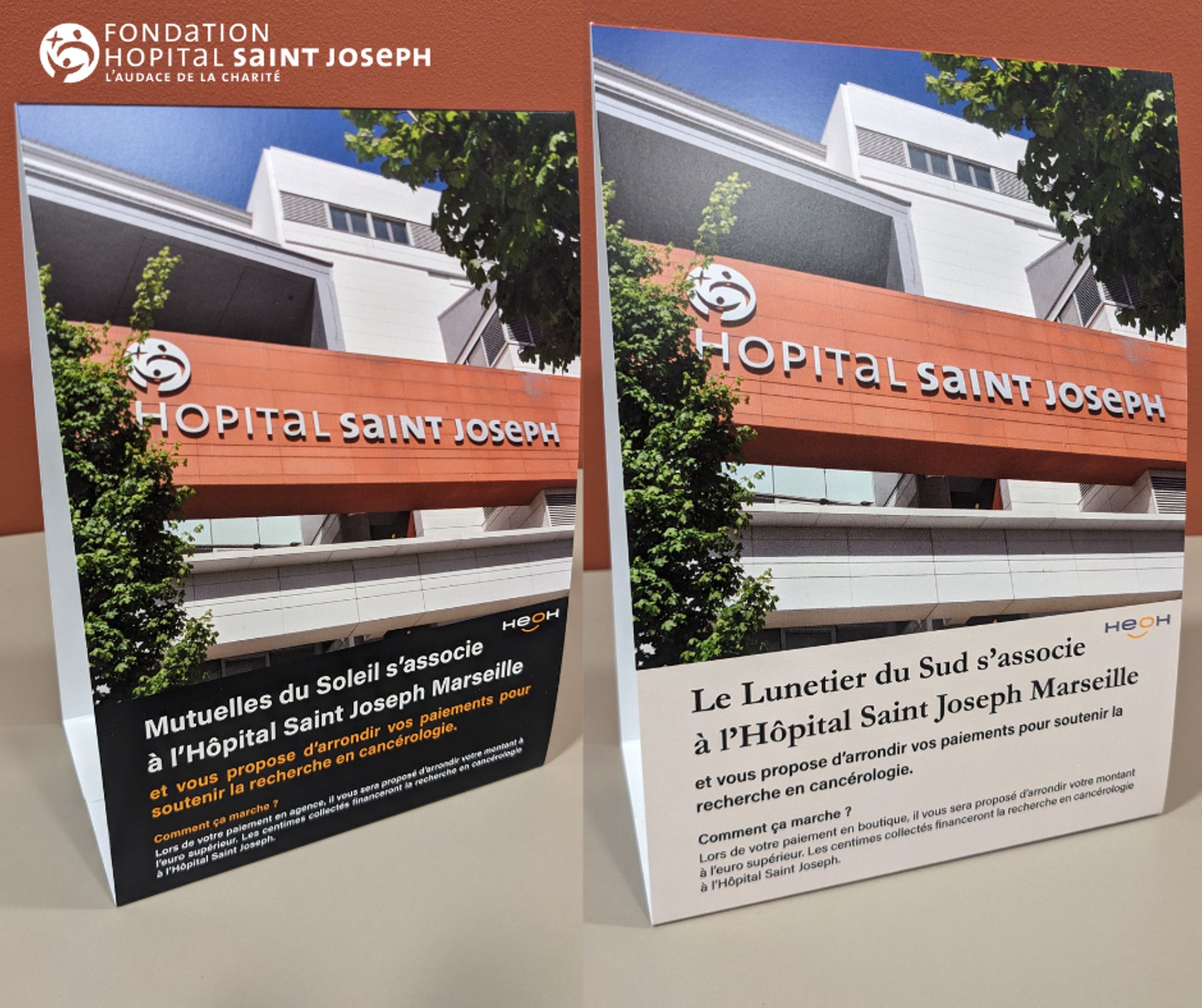 La Fondation Hôpital Saint Joseph remercie chaleureusement Les Mutuelles du Soleil et Le Lunetier du Sud pour leur précieux soutien, ainsi que l'ensemble des personnes qui arrondiront leurs achats.