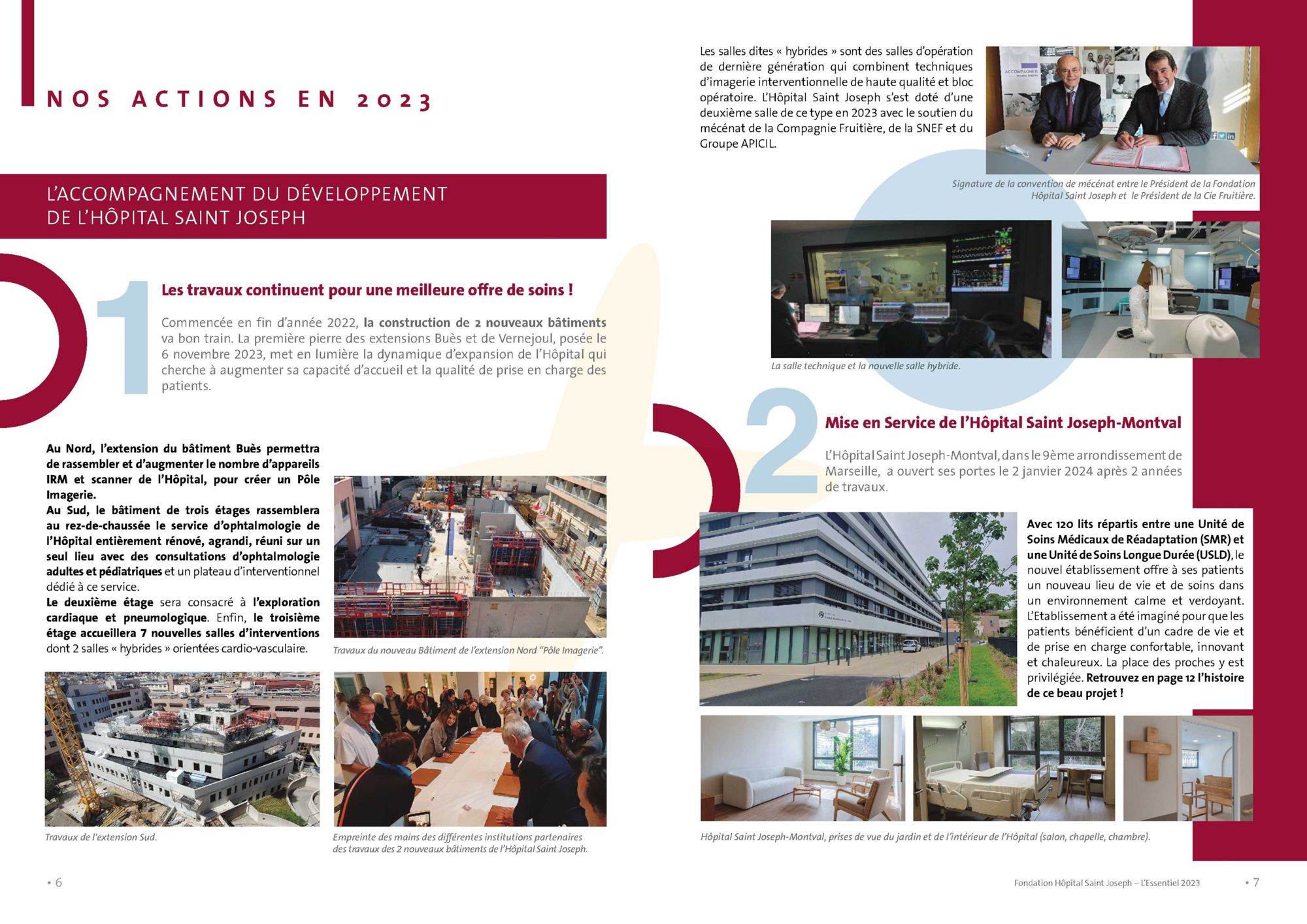 L'année 2023 a été une année riche en évènement pour la Fondation Hôpital Saint Joseph : la fin du mandat du Président Antoine Dubout, l'ouverture de l'Hôpital Saint Joseph-Montval, l'un des grands projets mené par la Fondation, les extensions de l'Hôpital Saint Joseph qui sortent de terre, ou encore les nombreuses études de Recherche Médicale qu'elle soutient. Bruno Vergobbi, le nouveau Président de la Fondation continuera à mener ces actions, avec votre précieux soutien. Tout est possible, ensemble.