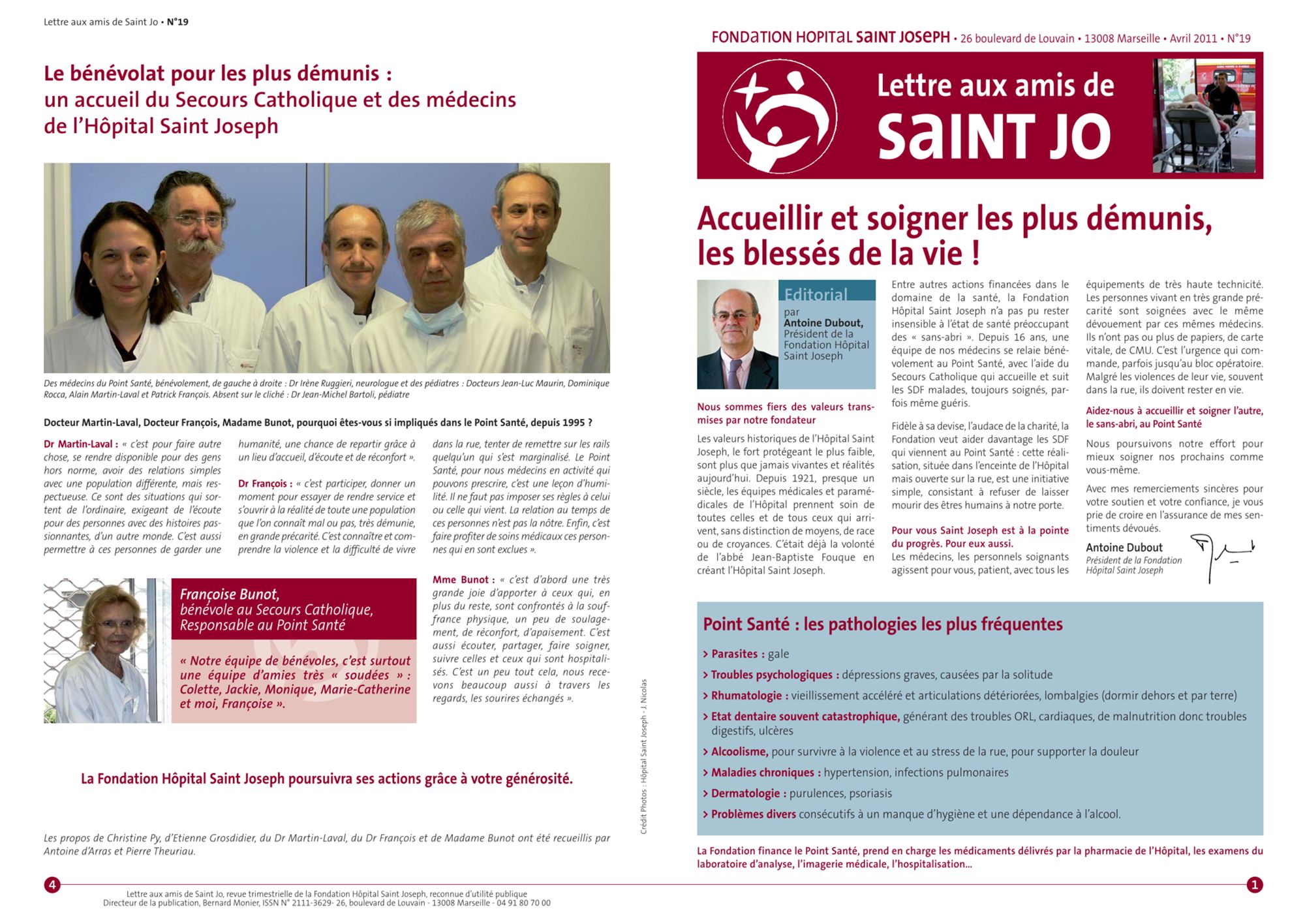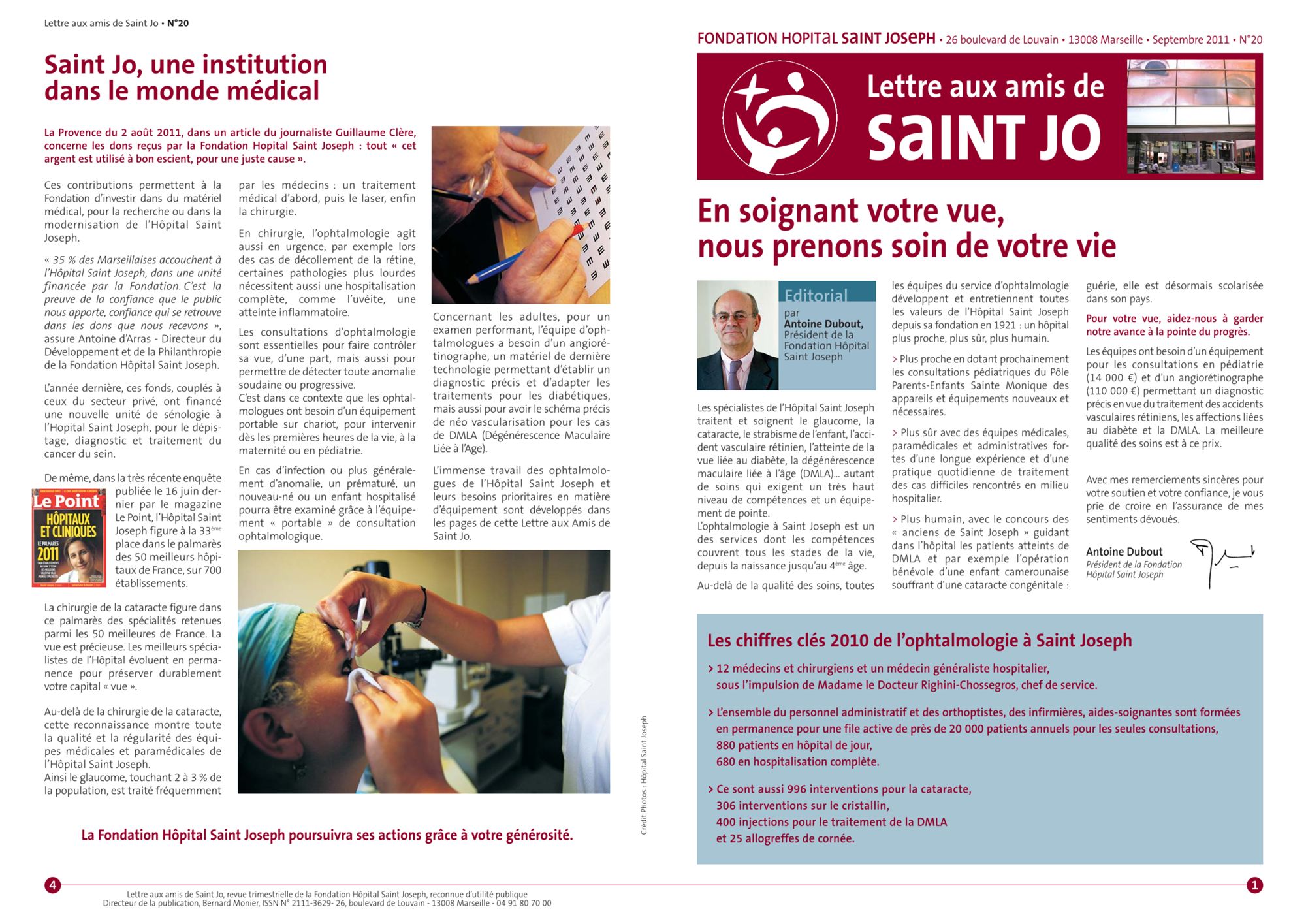 2011 Lettre aux amis n°21 : Soutenir la Recherche, c'est investir dans votre santé (747.5 Ko) Lettre aux amis n°20 : En soignant votre vue, nous prenons soin de votre vie (861.4 Ko) Lettre aux amis n° 19 : Accueillir et soigner les plus démunis, les blesses de la vie! (615.8 Ko) Lettre aux amis n°18 : Avoir un cur, avoir du cur! (691.4 Ko)