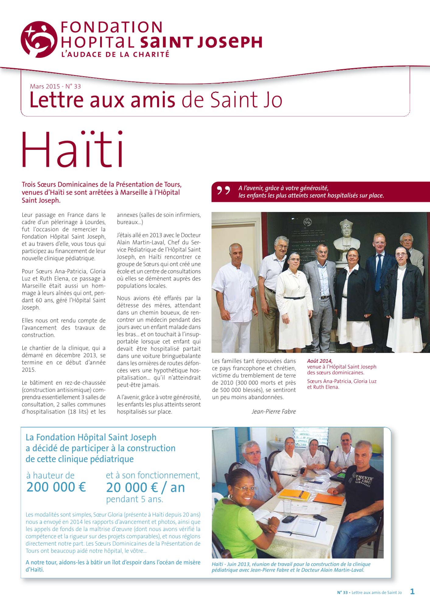 2015 Lettre aux amis n°36 : Recherche Médicale et Chimiothérapie (811.8 Ko) Lettre aux amis n°35: Travaux au service des Urgences (790.7 Ko) Lettre aux amis n°34 : Innovations et nouvelles technologies en Ophtalmologie (755.7 Ko) Lettre aux amis n°33 : Haïti, vers l'ouverture de la clinique pédiatrique (1.0 Mo)