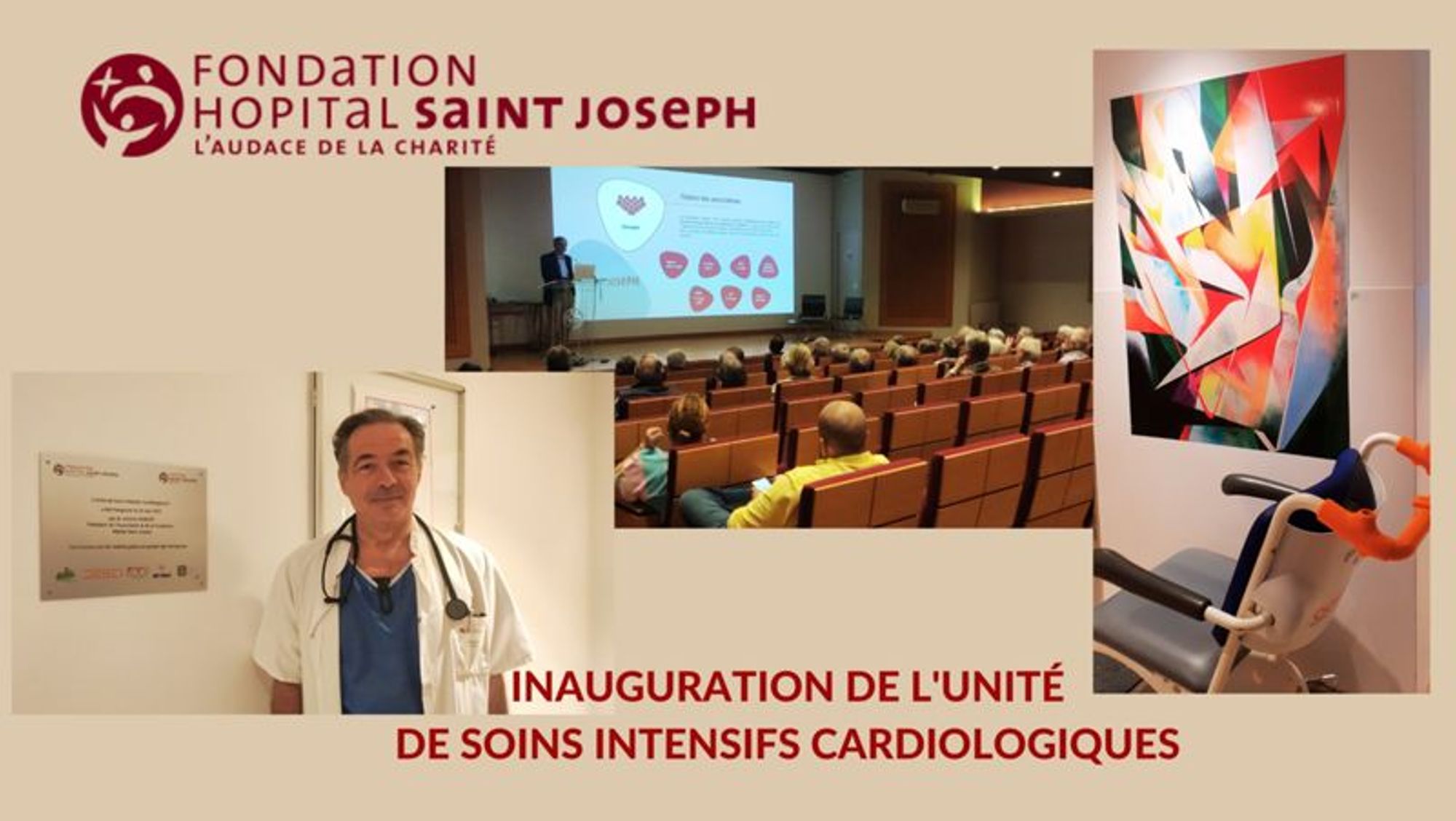Ouverte en avril 2022, la nouvelle unité a été inaugurée par M. Antoine DUBOUT, Président de la Fondation, lors d'une manifestation en deux temps, présentation de la Fondation et de ses projets à l'Auditorium de L'Hôpital Saint Joseph et visite guidée de l’Unité par le Dr Khanoyan, coordonnateur de la Fédération de Cardiologie.
