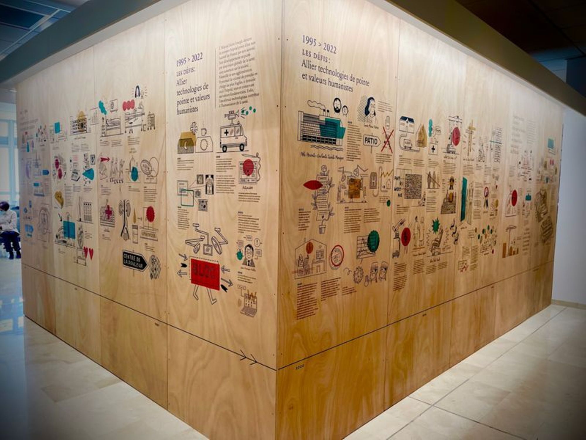 Outre l'exposition positionnée sur un cube pour permettre à chacun de facilement en découvrir le contenu, un film, visible à l'intérieur de l'exposition, qui allie le passé et le présent, a également été réalisé afin de rendre hommage à tous ceux, médecins, soignants, personnels techniques et administratifs, dirigeants, administrateurs, qui, grâce à un engagement humain sans faille, représentent les valeurs fondatrices d'hier, d'aujourd'hui et de demain.