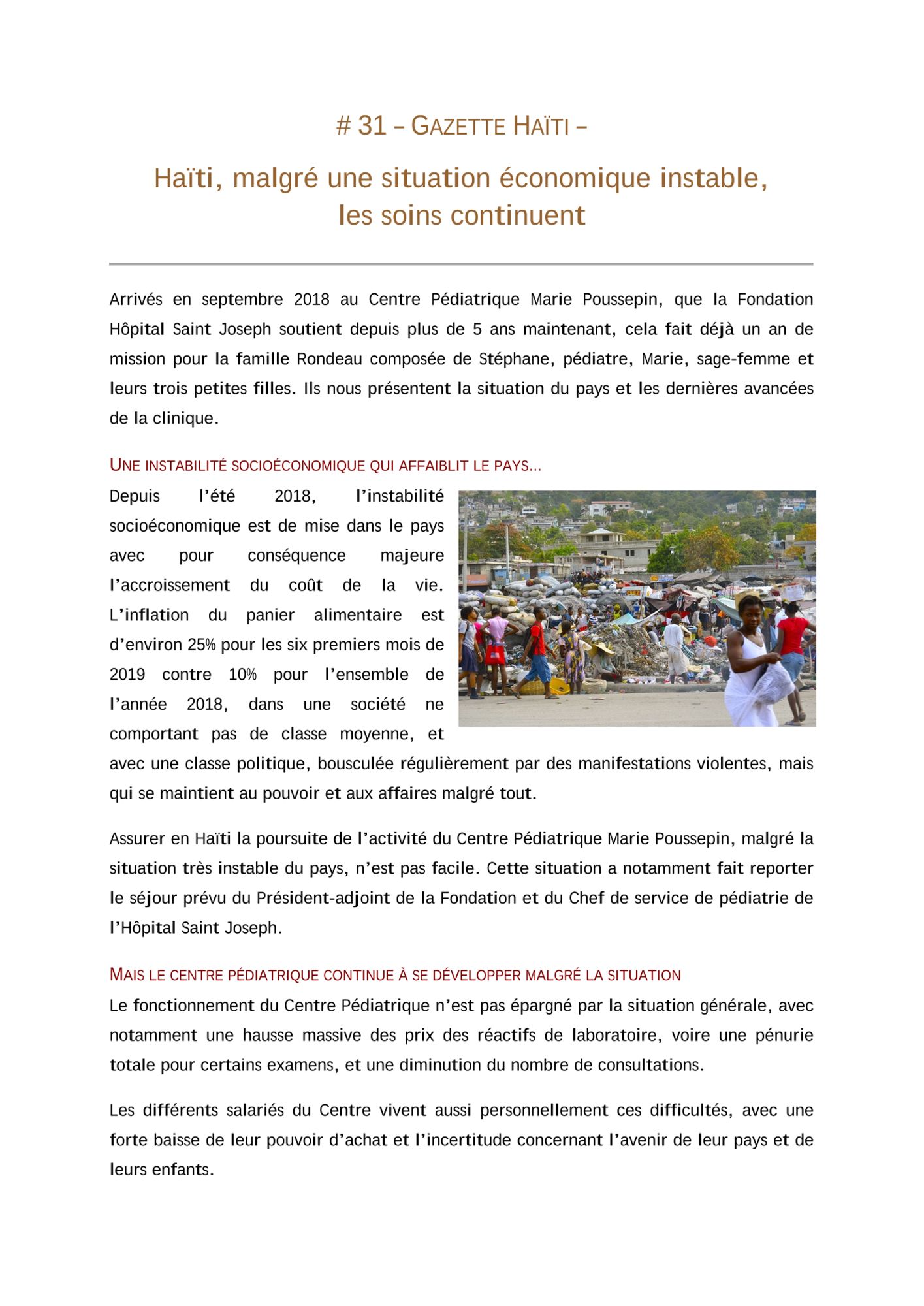 Haïti, malgré une situation économique instable, les soins continuent - Gazette # 31 - Eté 2019