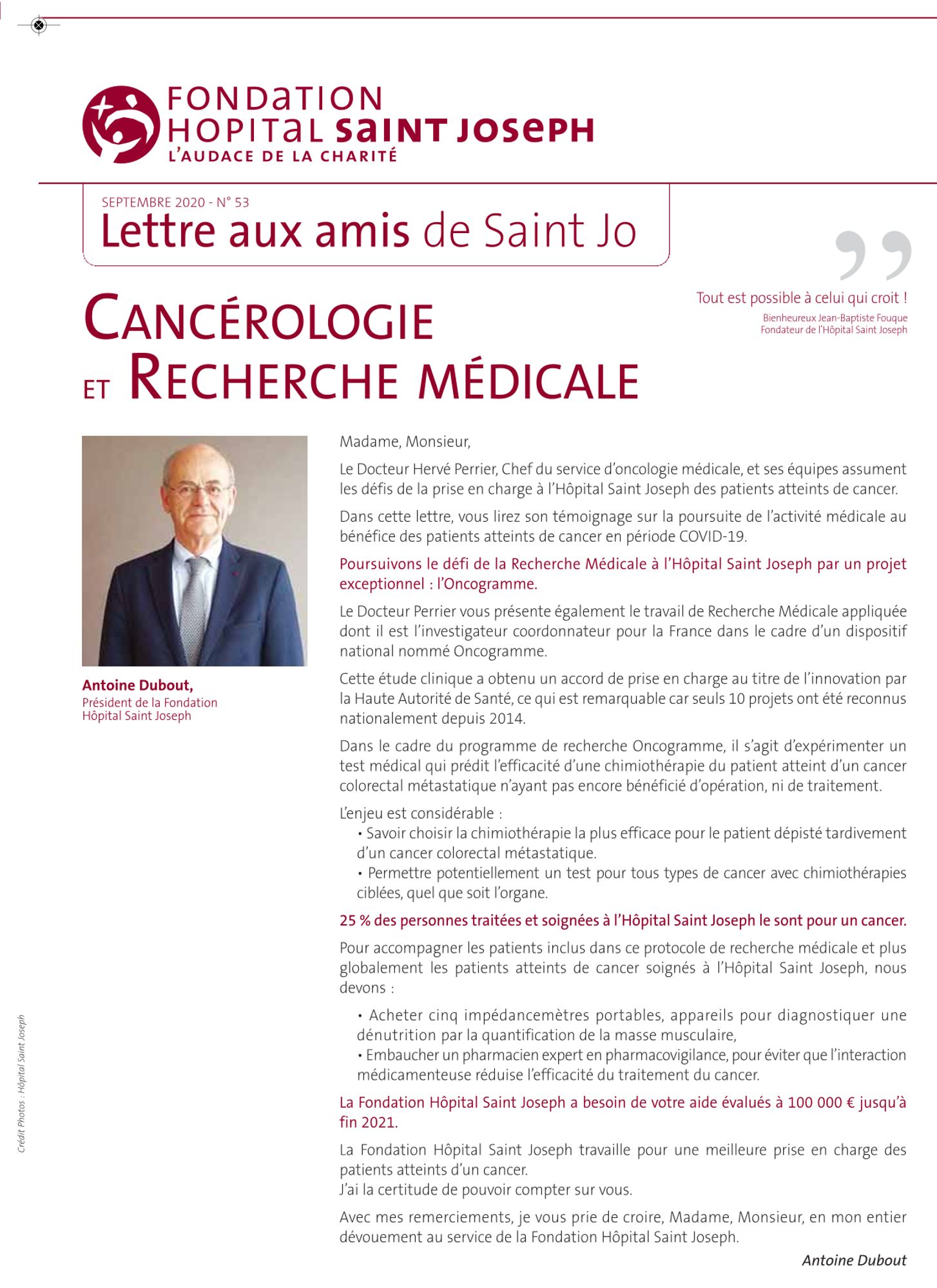 Lettre aux amis n°53 : Cancérologie et Recherche Médicale